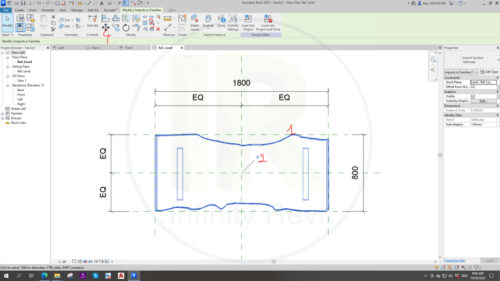 Bước 3: Model khi mới import vào sẽ bị ghim lại, vì vậy các bạn chọn model rồi nhấn Unpin sau đó Scale để đưa model về đúng kích thước (bàn dài 1,8m), tiếp theo các bạn Move model về vị trí chính giữa family ( có thể vẽ thêm các ref plan để kiểm tra kích thước như hình)